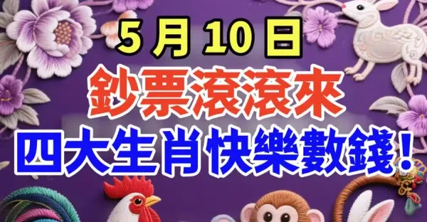 5 月 10 日,鈔票滾滾來,四大生肖快樂數錢