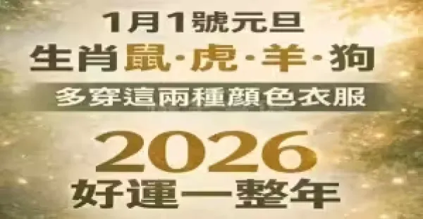 1月1號元旦 生肖鼠、虎、羊、狗 多穿這兩種顏色衣服 2026好運一整年!