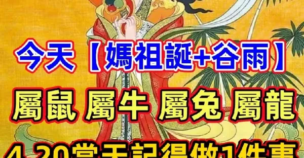 百年難得一見!【媽祖誕+穀雨】,生肖屬鼠、牛、兔、龍 4.20日當天做1事,順風順水一整年!