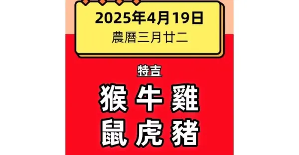 小運播報:2025年4月19日(星期六)~猴、牛、雞 大吉