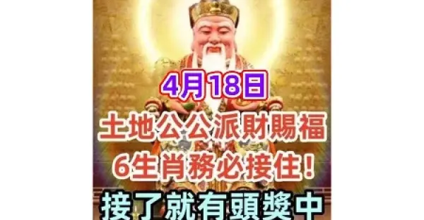 4月18日:土地公公派財賜福,6生肖務必接住!接了就有頭獎中!!