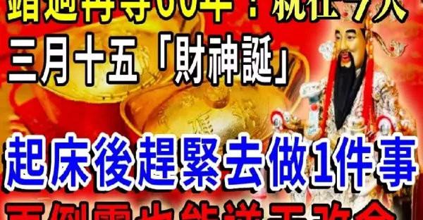 就在今天!農曆3月15「財神誕辰」,起床後牢記:1不拜,2不去,3不吃,4不借!納財迎福!