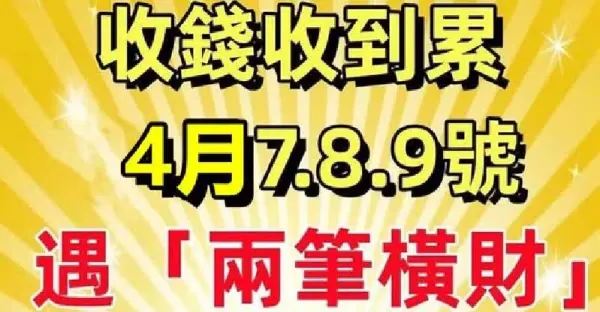 收錢收到累!4月7.8.9號遇「兩筆橫財」日子一順百順的生肖!