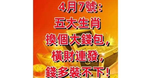 4月7號準備換個大錢包,橫財連發,錢多裝不下的生肖!