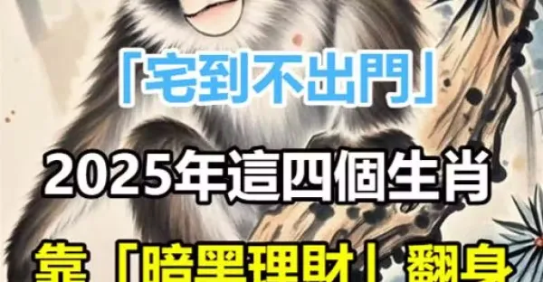 「宅到不出門」!2025年這四個生肖靠「暗黑理財」翻身!存款千萬裝月光族,第一名你絕對猜不到!
