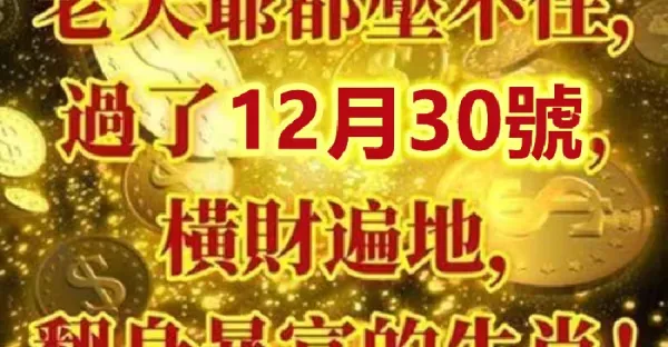 明天12月30號 三生肖 大發橫財 財運一路翻倍漲!