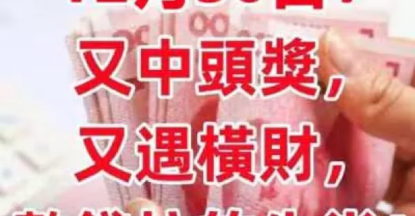 12月30日又中頭獎 ,又遇橫財,數錢忙的生肖! !