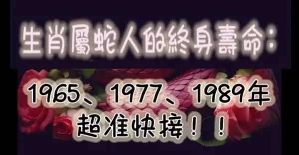 生肖屬蛇人的終身壽命: 1965、1977、1989年 准得可怕快來接!!!