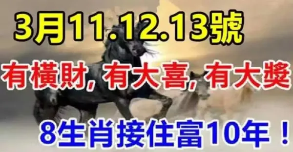 3月11.12.13日:八生肖接住富十年!有橫財,有大喜,有大獎!