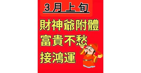 5生肖「財神爺附體」 「 3月上旬 」 富貴不愁 接鴻運