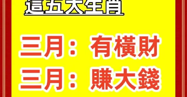 三月份開始有橫財,賺大錢的五大生肖