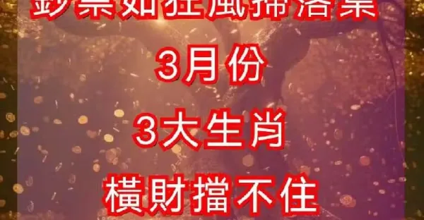 鈔票如狂風掃落葉,3月份:3大生肖橫財擋不住