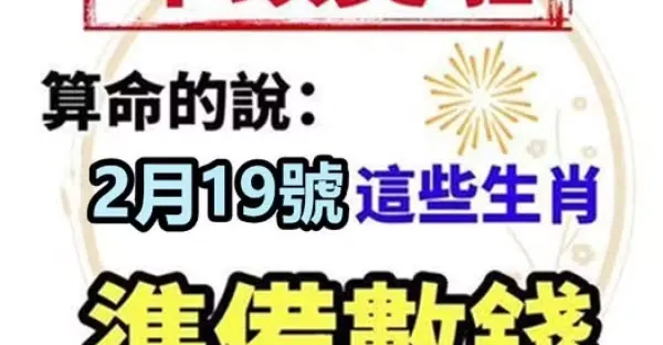 2月19日一筆橫財入命,6個生肖財運當頭,徹底翻身!