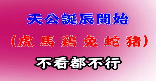 天公誕辰開始,六大生肖不看不行, 虎、馬、雞、兔、蛇、豬