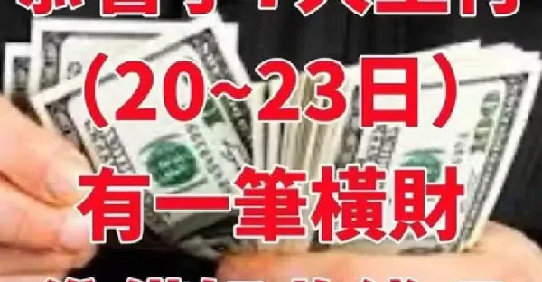 恭喜了7大生肖,在未來三天( 1月20~23日)即將有一筆橫財!