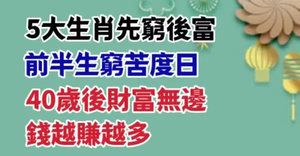 先窮後富!前半生窮苦度日,40歲後財富無邊,錢越賺越多的5大生肖 !