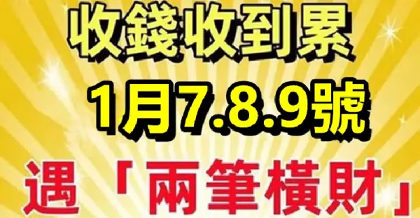 收錢收到累!1月7.8.9號遇「兩筆橫財」日子一順百順的生肖