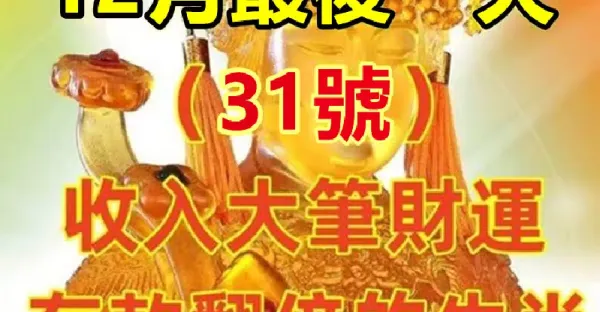 12月最後一天(31號)收入大筆財運,存款翻倍的生肖!