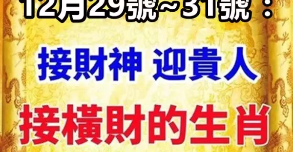 12月29號 到 31號:接財神 ,迎貴人,接橫財的生肖!