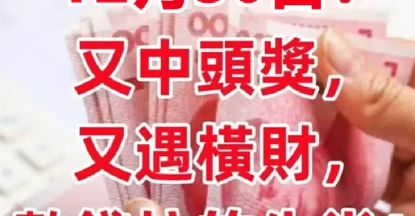 12月30日又中頭獎 ,又遇橫財,數錢忙的生肖 !