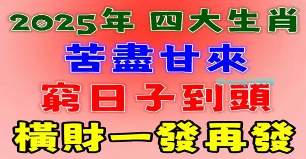 2025年苦盡甘來,窮日子到頭的四個生肖
