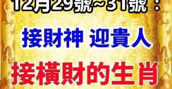 12月29號~31號:接財神 ,迎貴人,接橫財的生肖!