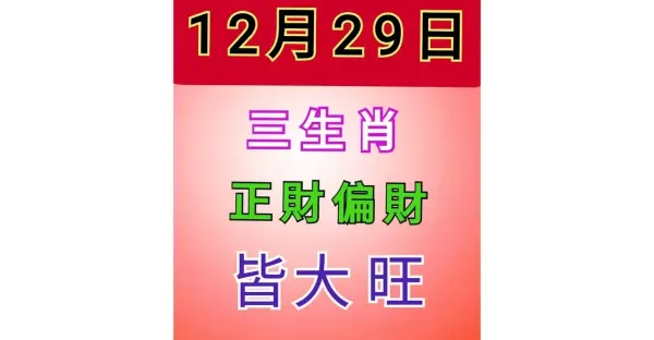 明天12月29號,三大生肖橫財最旺