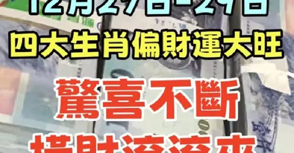 12月27.28.29日:偏財爆棚,喜中大獎的生肖!