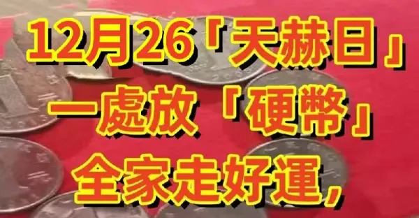 就在明天!12/26日「天赫日」一處放「硬幣」全家走好運,財運旺旺來!