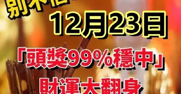 12月23日「頭獎99%穩中」財運大翻身,發家致富的生肖!