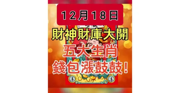 明天12月18日,財神財庫大開,五大生肖錢包漲鼓鼓!