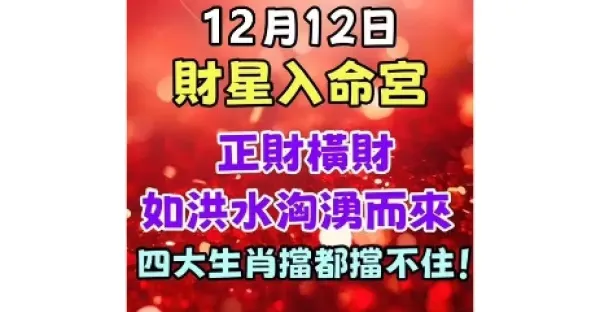 12月12日財星入命宮,正財橫財如洪水洶湧而來,四大生肖擋都擋不住!