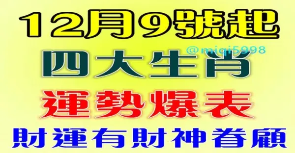 12月9日:官運 財運 桃花運 橫財 偏財並發大財的五生肖