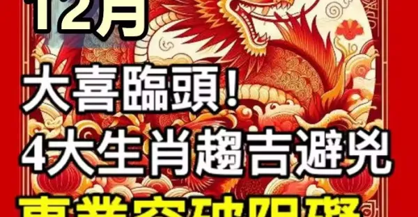 大喜臨頭!12月:4大生肖趨吉避凶,事業突破阻礙,發財喜事成雙!