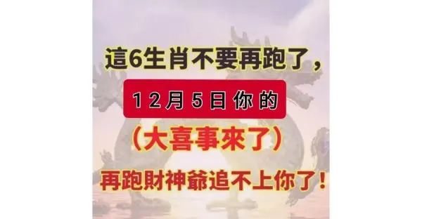 這六大生肖不要再跑了,12月5日你的(大喜事)來了 ,再跑財神爺追不上你了 !