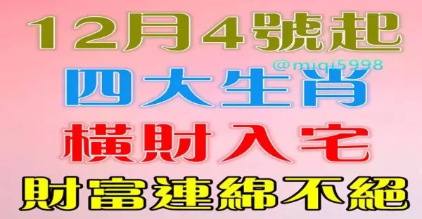 12月4號 四生肖 橫財入宅