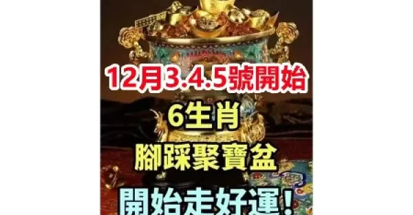12月3.4.5號開始,腳踩聚寶盆的6生肖,開始走好運!