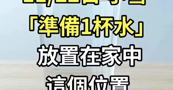 就在明天! 11/22日小雪,準備「1杯水」放置在家中這個位置,招橫財走好運!!