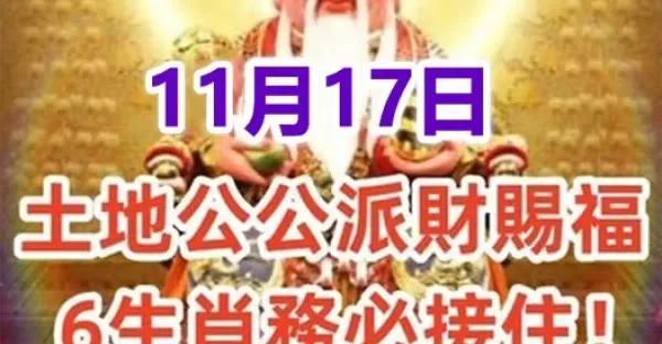 11月17日:土地公公派財賜福,6生肖務必接住!接了就有頭獎中