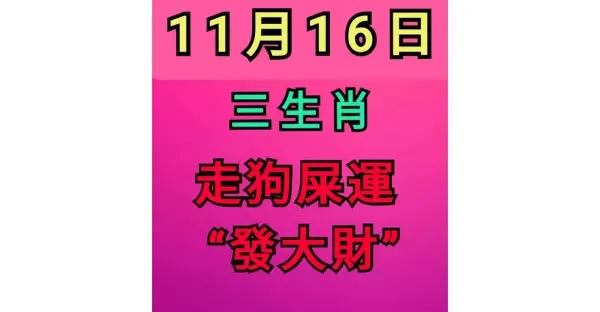 11月16日 三生肖 走 「 狗屎運 」 「發大財」!