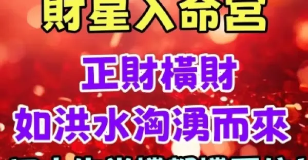 11月12日,財星入命宮,正財橫財如洪水洶湧而來,四大生肖擋都擋不住!