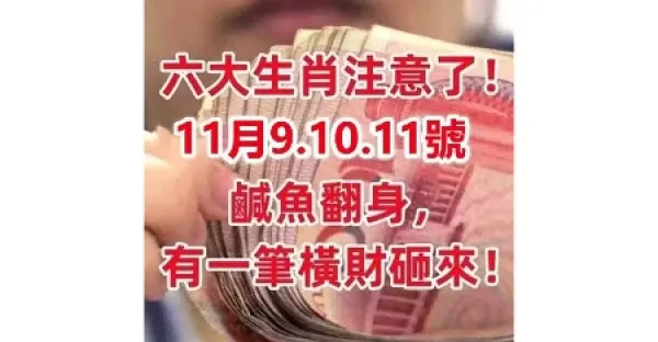 11月9.10.11號鹹魚翻身,有一筆橫財砸來的生肖快來接!