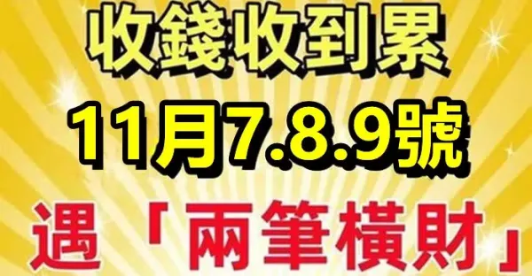 收錢收到累!11月7.8.9號遇「兩筆橫財」,日子一順百順的生肖 !