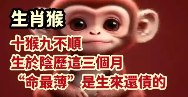 生肖猴:十猴九不順,生於陰曆這三個月「命最薄」,是生來還債