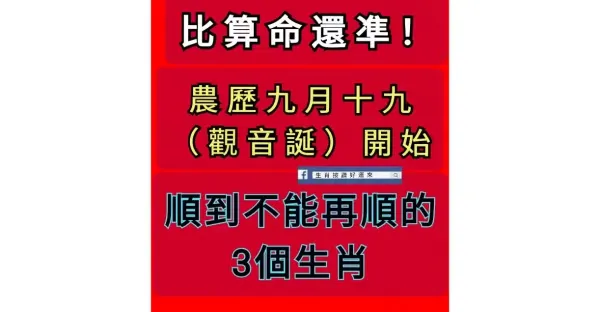 比算命還凖!農曆九月十九(觀音誕)開始,順到不能再順的3個生肖