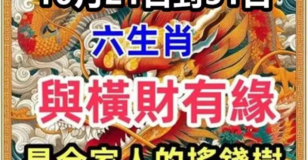 10月21日到31日與橫財有緣的生肖,是全家人的搖錢樹