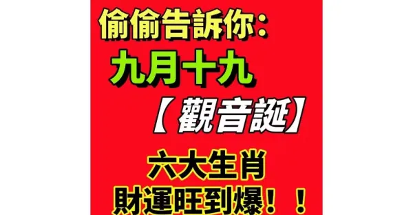 偷偷告訴你:六大生肖,九月十九【觀音誕】財運旺到爆 !