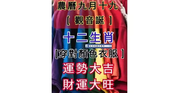 農曆九月十九 [ 觀音誕 ],12生肖 [穿對顏色衣服 ] ,運勢大吉,財運大旺