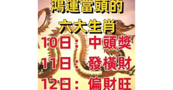 鴻運當頭的生肖:10月10日中頭獎 ,11日發橫財 ,12日偏財旺!