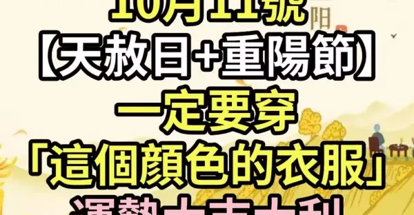 10月11號【天赦日+重陽節】一定要穿「這個顏色的衣服」運勢大吉大利, 財運好運不斷